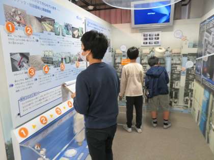 映像を見たり,パネルを読んだりと興味がある会社について黙々と調べていました。