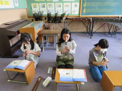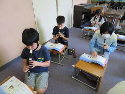 音楽では,リコーダーの練習をしています。