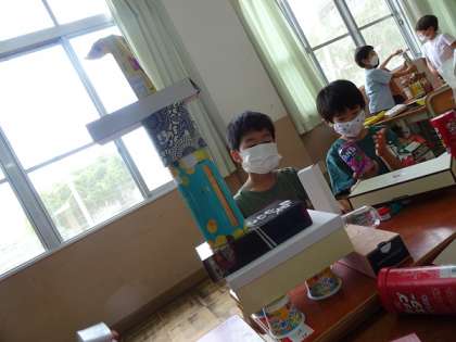 いろいろな形を組み合わせて,協力して上手に作れました。
