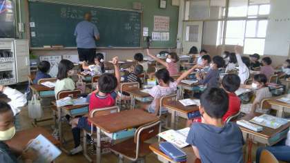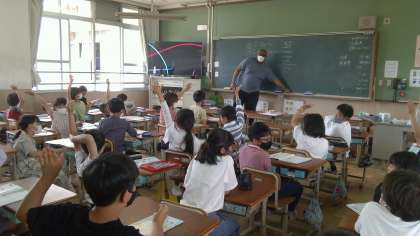 外国語の学習では,「I like~. Do you like ~? 」の英語を発音して楽しく学習に取り組みました。どんどん,たくさんの外国語に親しんでほしいと思います。