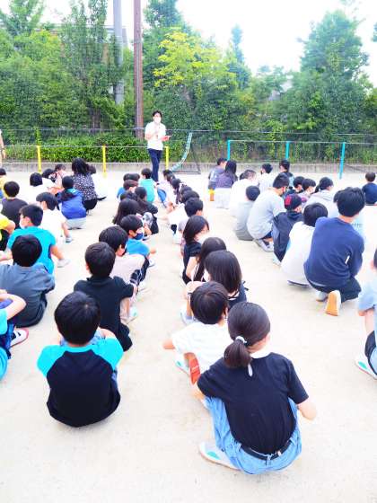 今日は,今年初めての避難訓練に取り組みました。今回は,地震を想定した訓練ということで,はじめにこれまで日本に起こった大きな地震災害についてふりかえりながら,自分たちの身近でもいつ起こるかわからないといったことを,みんなで考えていきました。放送がなり,緊急地震速報の音を聞いた瞬間に机の下に素早くもぐり,しっかり頭を守る姿勢をとることができていました。実際に避難する際も,「おはしもて」を意識して適切な避難行動ができていたように思います。