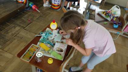 紙でわっかを作り,思い思いの飾りをつけて…。