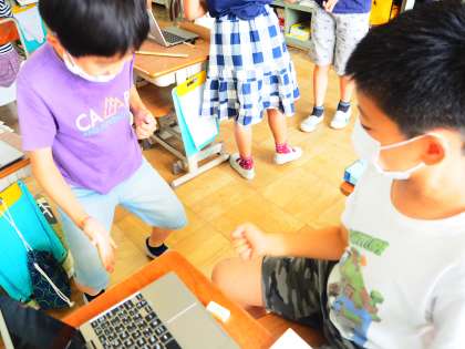 外国語活動の学習では,外国語の音に慣れ親しむだけでなく,日本の文化と比べながらその相違点に気付き,そのおもしろさを感じることを大切にしています。挨拶や数の数え方,じゃんけん一つとっても,その違いは明らかで,子たちからは面白い視点での気づきが生まれています。