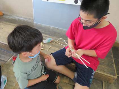 室町まつりに向けて,たてわりグループごとに分かれ準備を始めました。