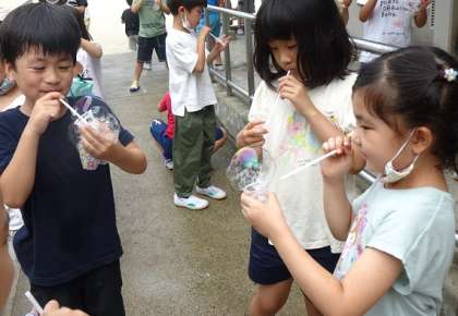 生活科の学習で,しゃぼん玉あそびをしました。