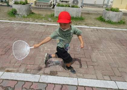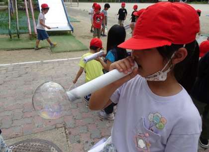少し大きなシャボン玉が作れたりしました。