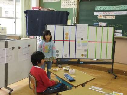 かけ算の筆算について説明している子どももいます。