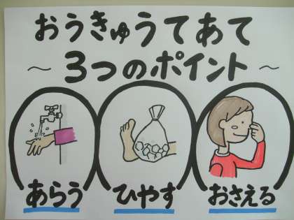みなさん手当ての方法をよく知っていました。「ばい菌が入らないように洗う。」など、理由についても考えられました。