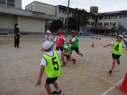 昨日と今日とでバトンの渡しの練習などを行いました。