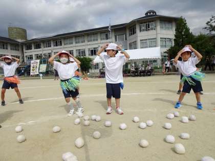 踊って、投げて、また踊る、楽しくかわいい玉入れでした。