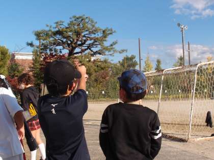 「先生、こぶし〇こぶんの高さだった!」「南東に見えました!」と報告してくれました。