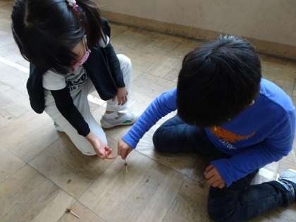 どんぐりごま、やじろべえ、松ぼっくりけん玉、