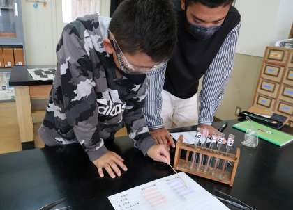 リトマス紙の色が変化する様子に驚きながらも、約束を守って安全に活動することができました。