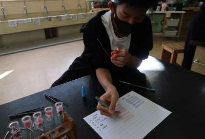 5つの水溶液について調べた班は、身近にある水溶液の性質を調べました。