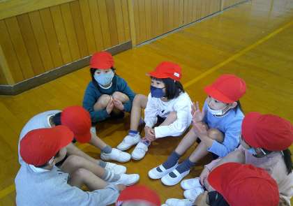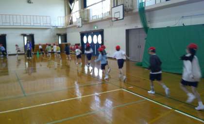 体育科の学習で「ゆっくりかけ足」に取り組んでいます。