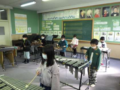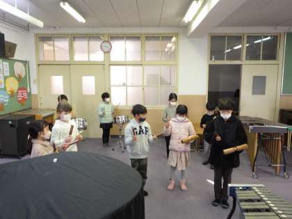 授業の終わりには、みんなで「かえるの合唱」の合奏をしてみました。