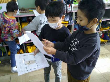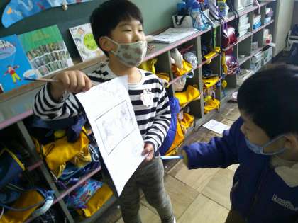 生活科の学習で、にこにこ大さくせんの報告会をしました。