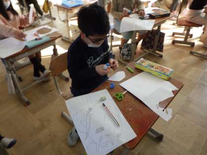 図画工作科「たのしく うつして」の学習で、紙版画を作っています。