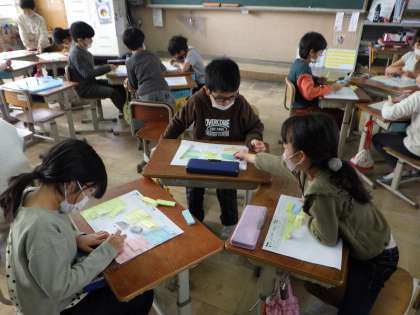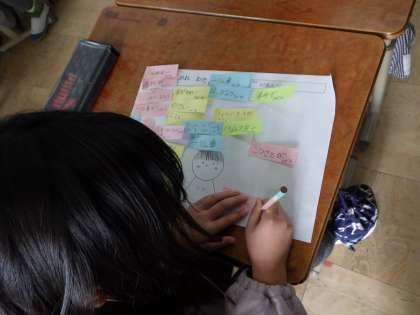 友達のできることやとくいなこと、いいところなどを付箋に書いて友達に渡しました。