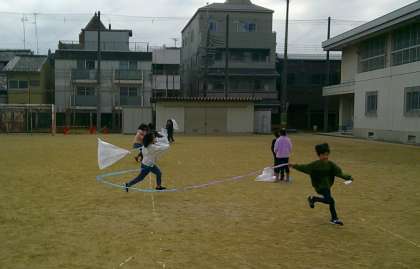 生活科の学習「ふゆを たのしもう」では、風となかよくなる遊びを考えました。