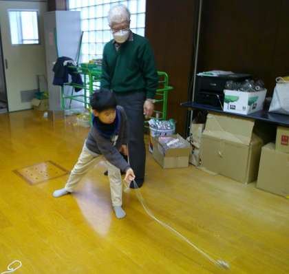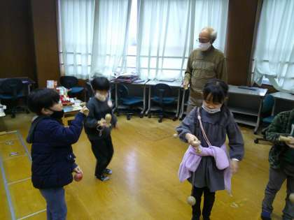昔遊びの名人に教わってこま回しもできるようになってきました!