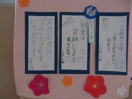 これからも感謝の気持ちをわすれないで、給食をしっかりと食べて、心も身体も健康に育っていってほしいです。