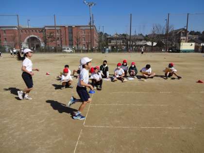 体育科の学習で持久走をしています。
