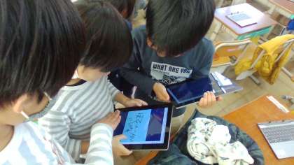 国語科の学習でGIGA端末(ロイロノート)を使って作成したクイズを出し合いました。
