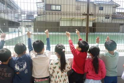 子どもたちは、わくわくしながら、運動場を見ていました。