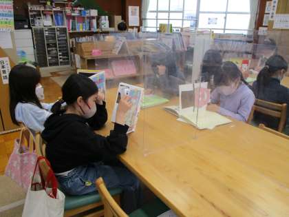今日は、4年生になって初めて図書館にいってみんなで読書活動に取り組みました。今年から新しい図書館の先生となり、今日が「はじめまして」の日でした。自分のお気に入りの本を探し、自分の席に座るとスーッとお話の世界に入っていっている様子でした。