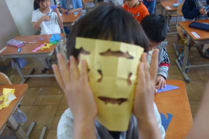 いろんな折り方や切り方を試しながら、