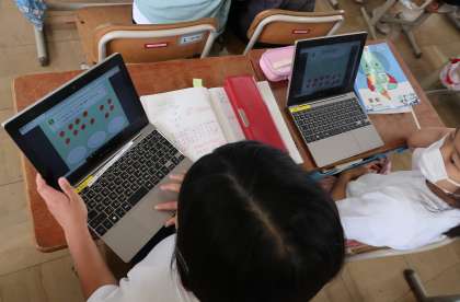 ロイロノートを使って,実際に操作しながら調べ,ペアで考え方を交流しました。