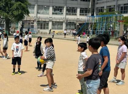 今日の中間休みは、1組も2組もみんな遊びを楽しんでいました。とても気持ちのいい天気の中どちらのクラスも精いっぱい身体を動かしており、授業もがんばって、あそびも元気いっぱいがんばる子たちの姿にとても感心しました。