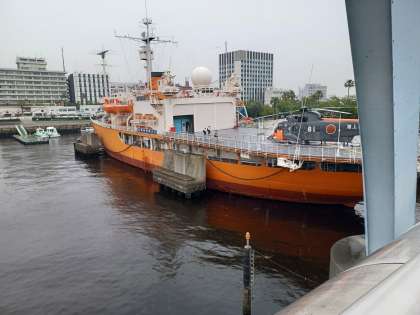 これからトヨタ産業技術記念館に向かいます。水族館の近くにある南極観測船も見ることができました。