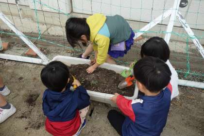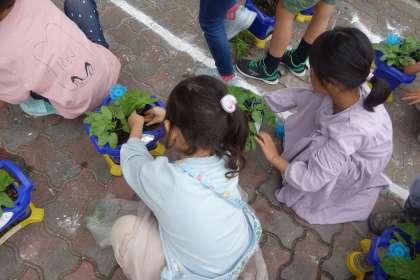 持って帰らなかった人は、学校の違う植木鉢にお引越ししました。