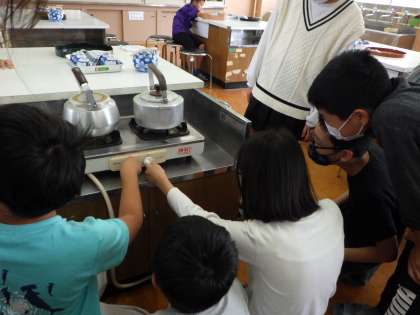 ガスコンロの使い方や急須の使い方など、初めての経験が多く友達と何度も確認しながら頑張っている姿が印象的でした。