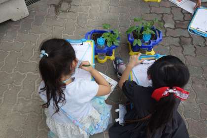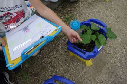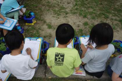 あさがおの本葉の観察をしました。