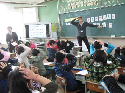 のやりとりにチャンツやゲームで慣れるようにしました。