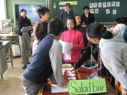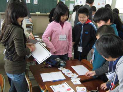 役割を交代する時には,その点についてもアドバイスして,子どもたちが意識できるようにしました。子どもたちは,楽しみながら会話に親しむことができました。