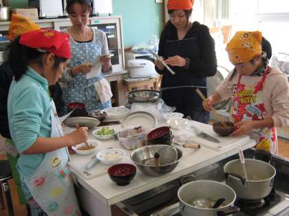 子どもたちの真剣さ一生懸命さと,おだしや味噌のおいしそうな香りの中で,活動は楽しく進んでいきました。