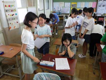 始業式が終わったあとは、クラスで夏休みのことについてゲームをしながら話し合いました。