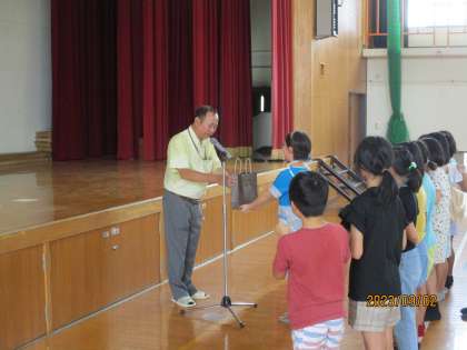 室町自主防災会長様に、4年生からお礼の