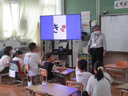 しりとりをしたり、パワーポイントを使って文字を少しずつ見せたりしながら言葉の学習をしました。