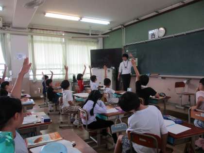 算数は「小数の計算の仕方について考えよう」というめあてで学習を行いました。イラストから問題を考え、小数の足し算の仕方を工夫して考えました。計算の仕方をみんなで共有したり、小数の計算をするときに大切なことを学習したりしました。自分では思いつかなかった友達の解き方に関心する場面もありました。ノートに自分なりの解き方を工夫している姿はさすがでしたね!