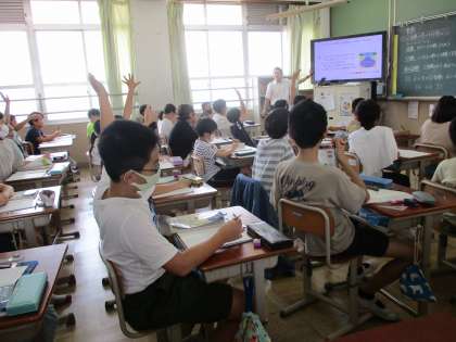 算数は「公倍数」の学習を行いました。前時に学習した倍数の考え方から、公倍数について考えることができました。いろいろな解き方を共有したり、練習問題に挑戦したりすることができました。練習問題を解く時間には、教え合いをする習慣がついてきています。お互いに高め合おうという姿が素晴らしかったです!