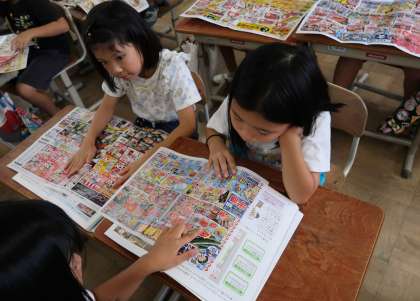 文字の大きさや色、ポップの言葉、写真などに注目しながら
