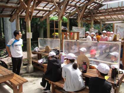 山の家の職員さんと担任の先生の説明を聞いて