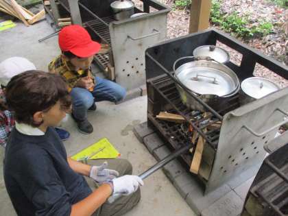 おなべでお米を炊いて、野菜を自分たちで切って、