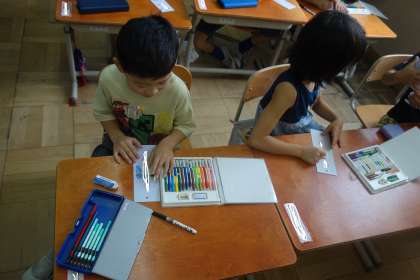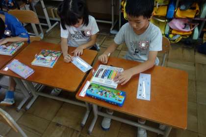 名前カードをつくりながら、