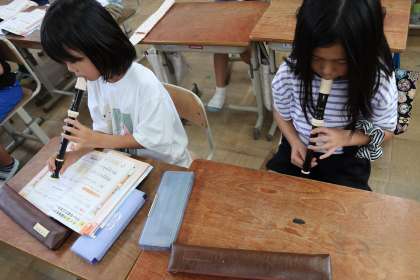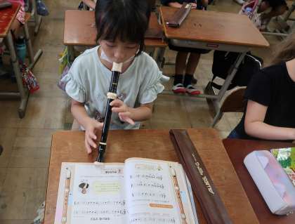 音楽科ではリコーダーの学習をしています。
